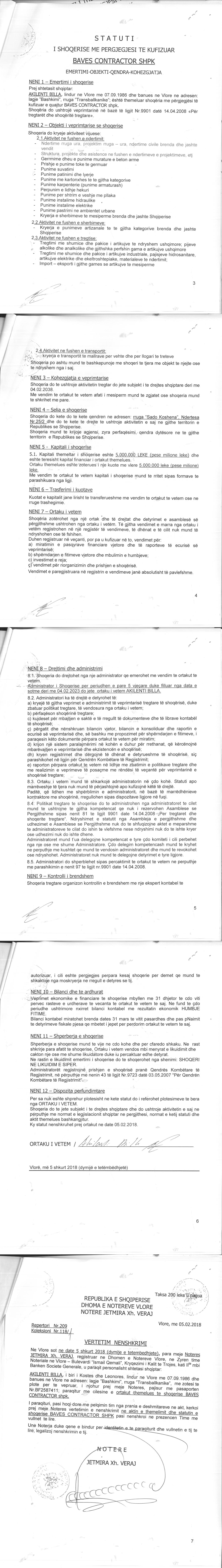 | Emërtime të tjera Tregtare: | "BAVES CONTRACTOR" |