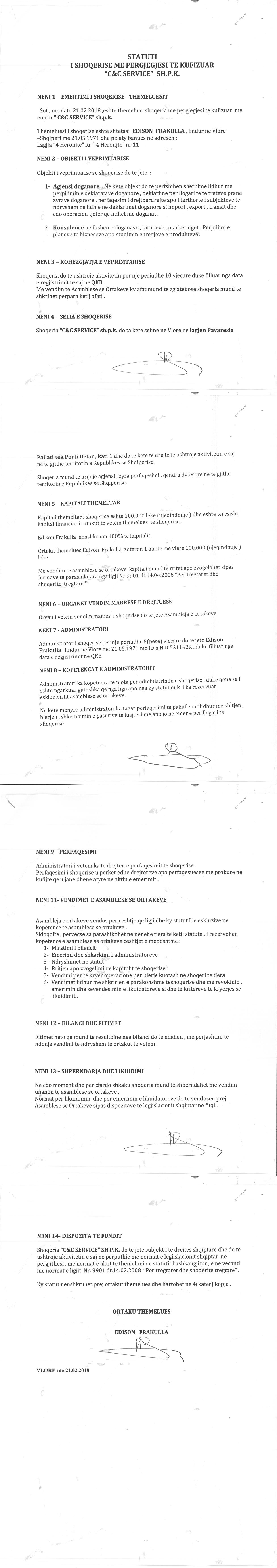 → Ekstrakti Historik I Regjistrit Tregtar date 11.12.2020 → Statuti I Shoqerise |