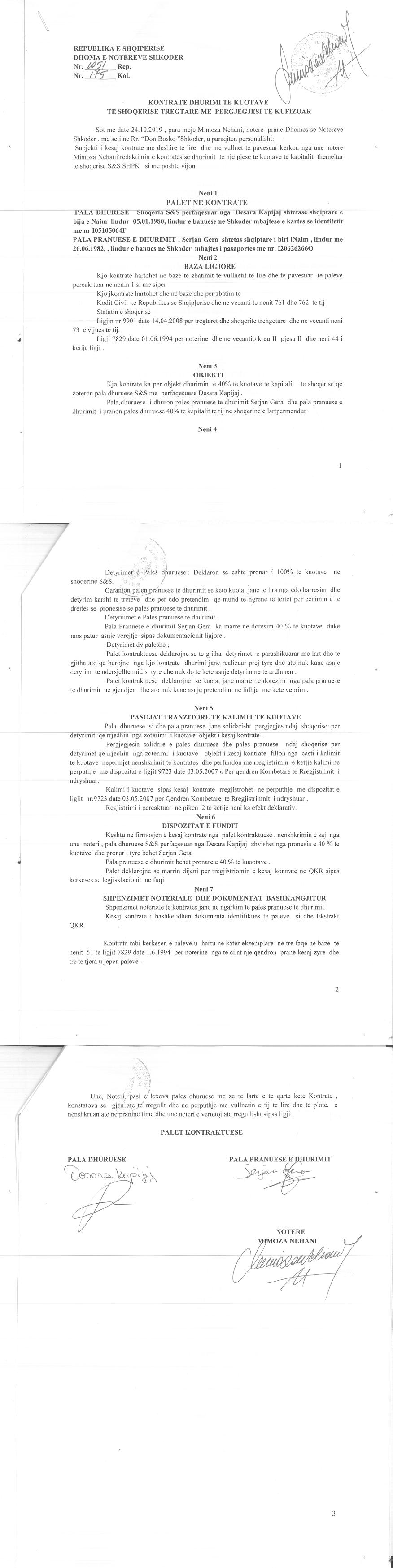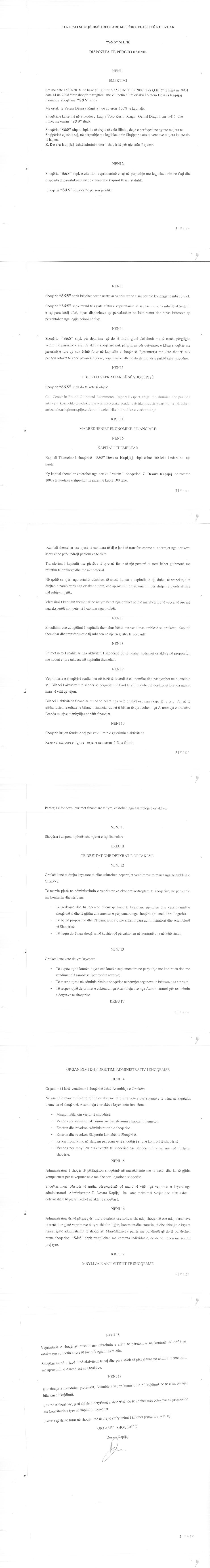 → Ekstrakti Historik i Regjistrit Tregtar date 15.09.2022 → Statuti i Shoqerise → Kontrate Dhurimi Kuotash date 24.10.2019 |