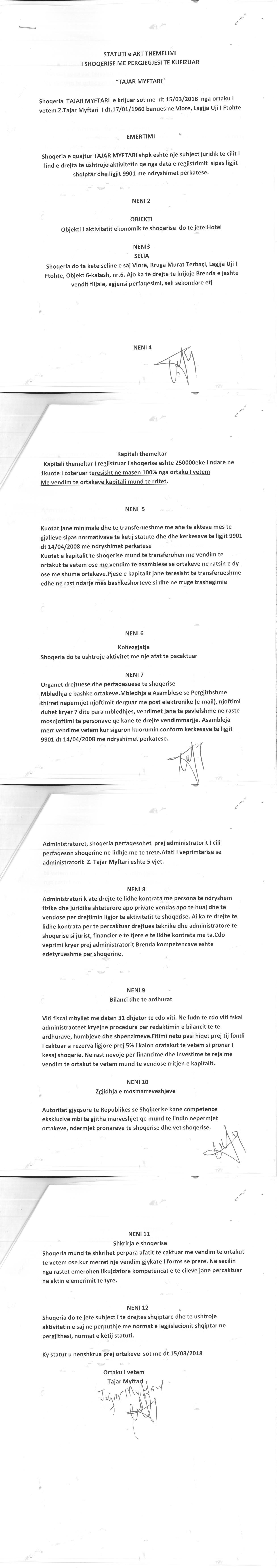→ Ekstrakti Historik i Regjistrit Tregtar date 16.09.2022 → Akt themelimi dhe Statuti i Shoqerise |
