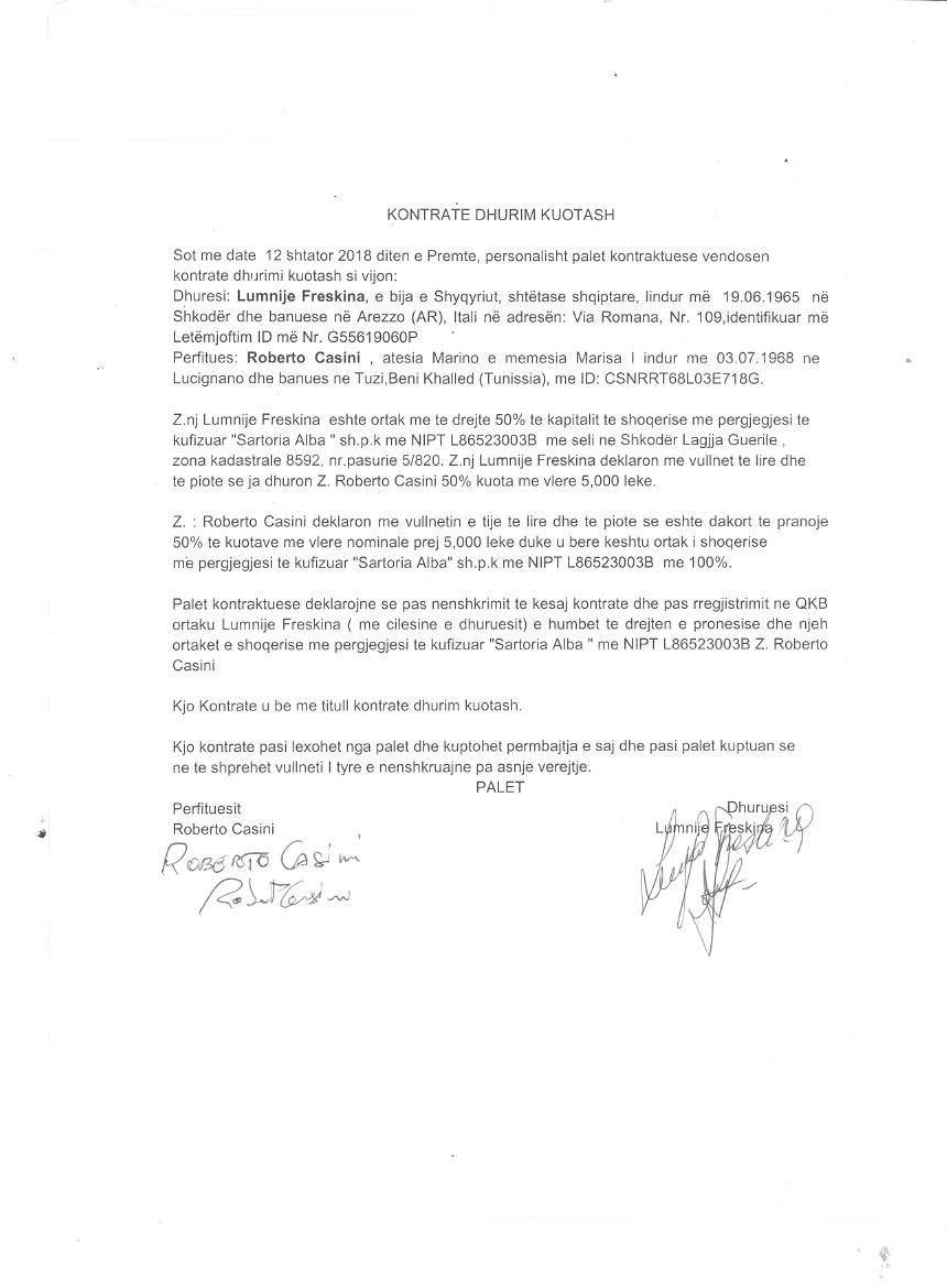 → Ekstrakti Historik i Regjistrit Tregtar date 20.09.2022 → Akt themelimi i Shoqerise → Kontrate Dhurimi Kuotash date 12.09.2018 |