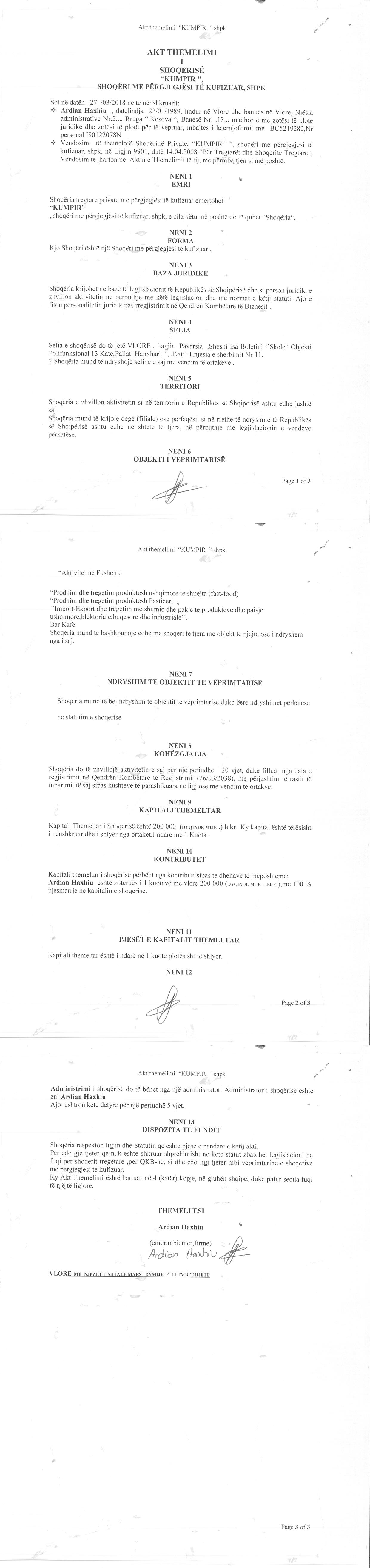 → Akti I Themelimit te Shoqerise |