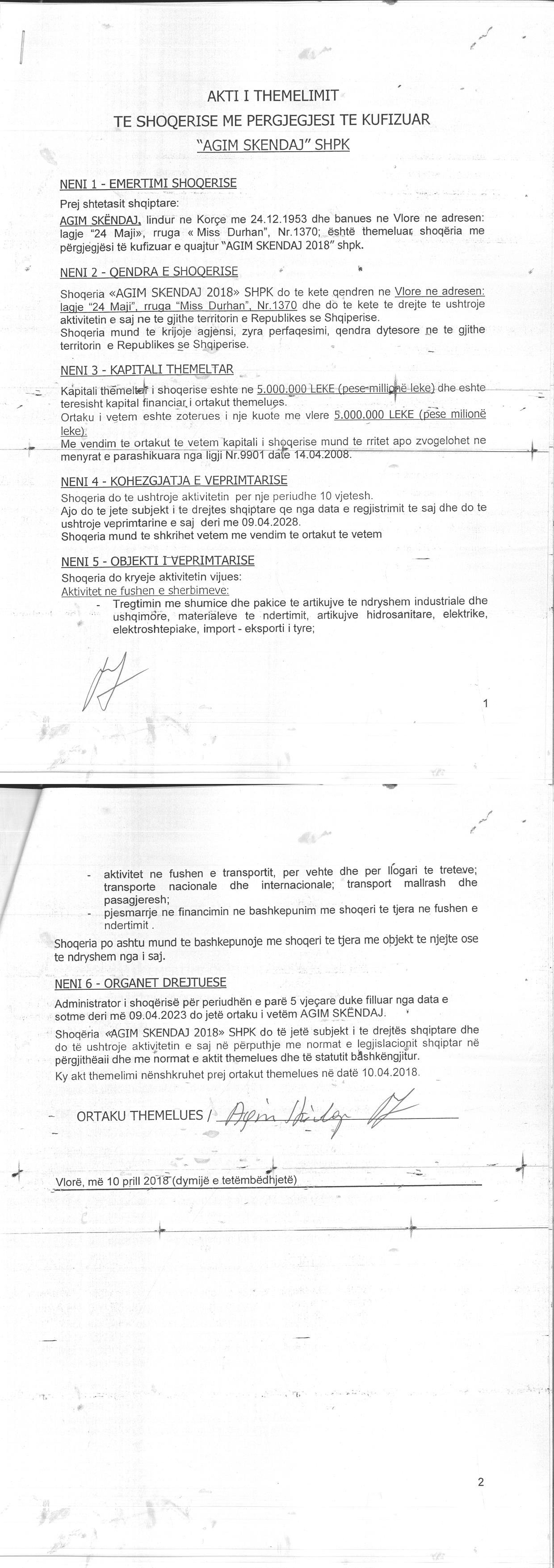 | Emërtime të tjera Tregtare: | " AGIM SKENDAJ 2018 " |