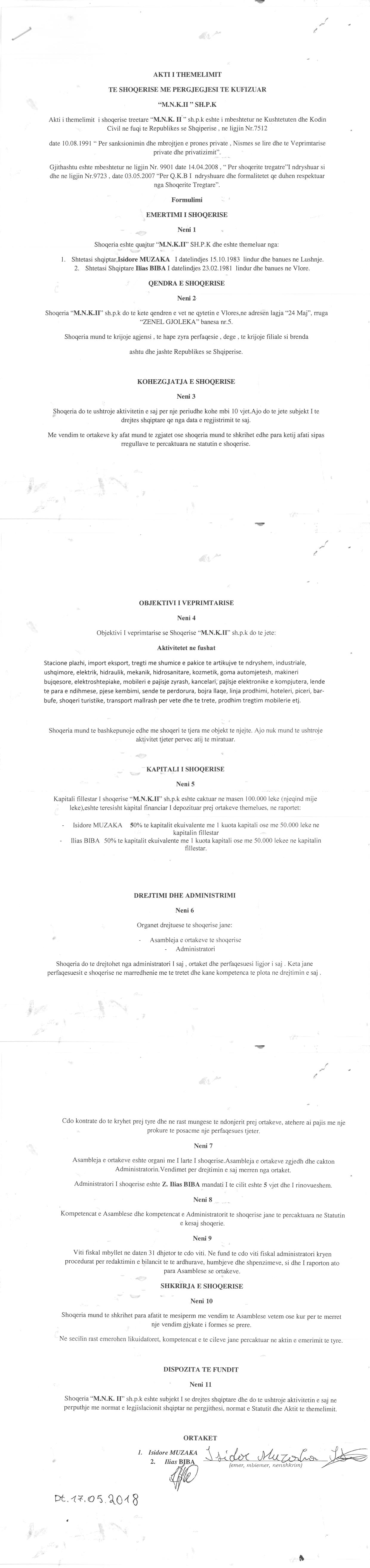 → Ekstrakti Historik i Regjistrit Tregtar date 18.10.2022 → Akt themelimi i Shoqerise |