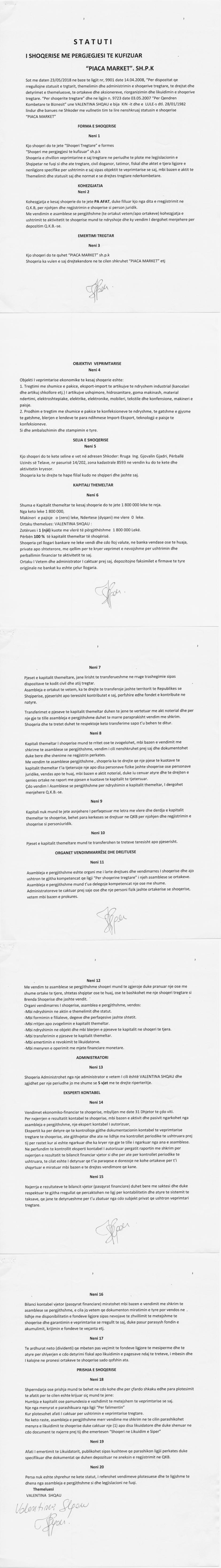 → Ekstrakt Historik i Regjistrit Tregtar date 21.10.2022 → Statuti i Shoqerise |