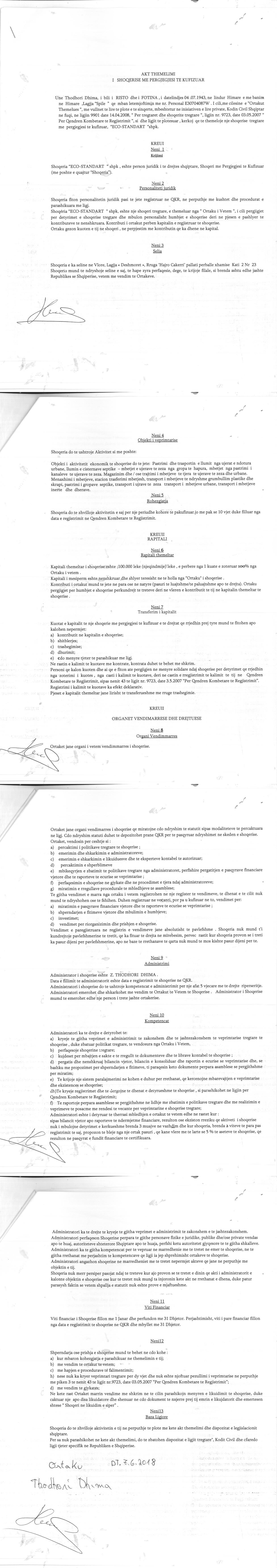 → Ekstrakt Historik i Regjistrit Tregtar date 26.10.2022 → Akt themelimi i Shoqerise → Kontrate Shitje Kuotash date 30.07.2018 |