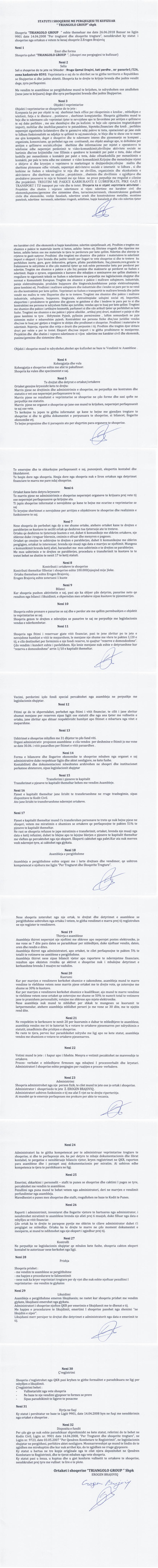 → Ekstrakt Historik i Regjistrit Tregtar date 29.10.2022 → Statuti i Shoqerise → Ekstrakt Historik i Regjistrit Tregtar date 09.09.2025 |