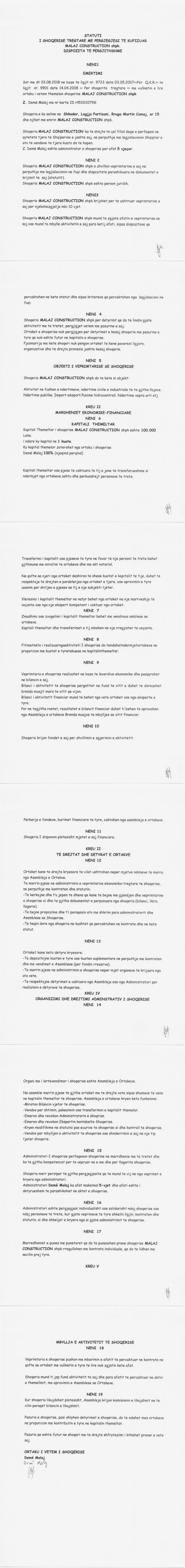 | Emërtime të tjera Tregtare: | MALAJ CONSTRUCTION |