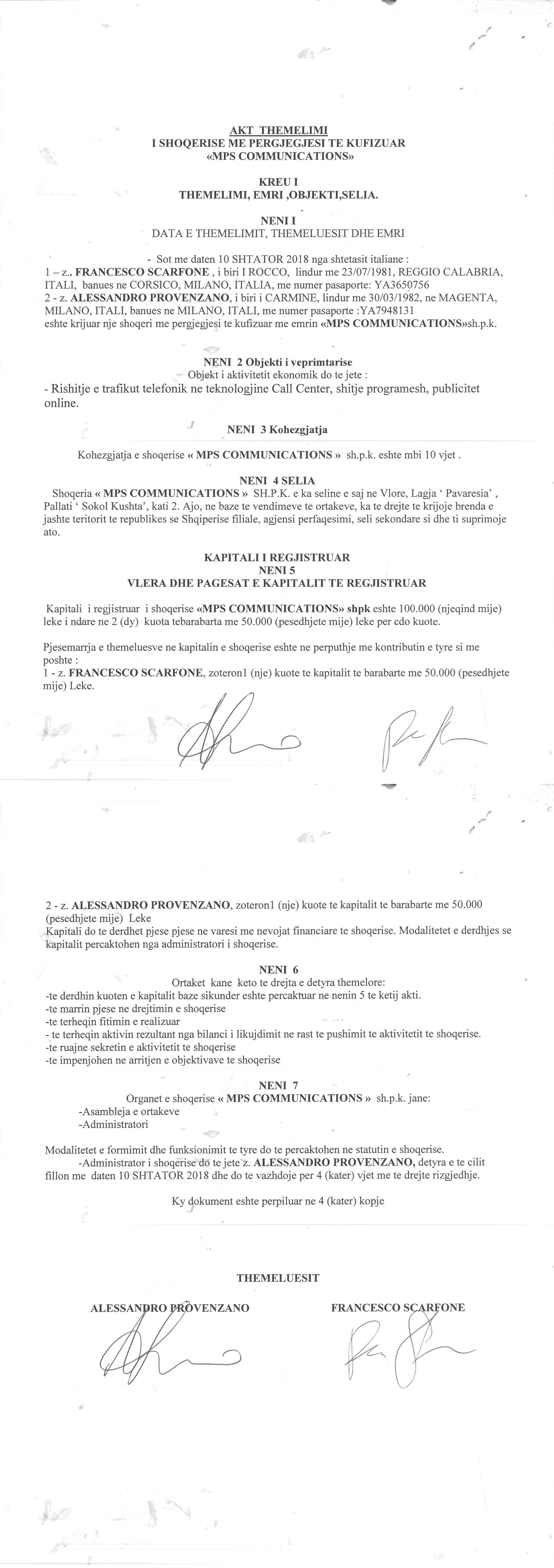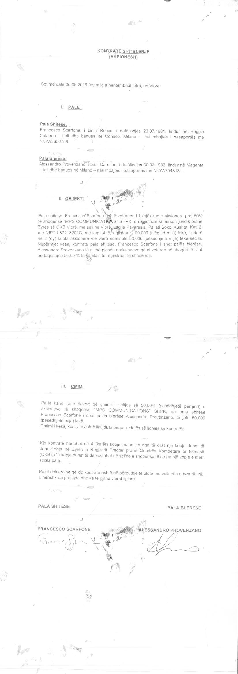 → Ekstrakti Historik i Regjistrit Tregtar date 09.08.2022 → Akti i themelimit te Shoqerise → Kontrate e Shit-Blerjes se Kuotave date 06.09.2019 |
