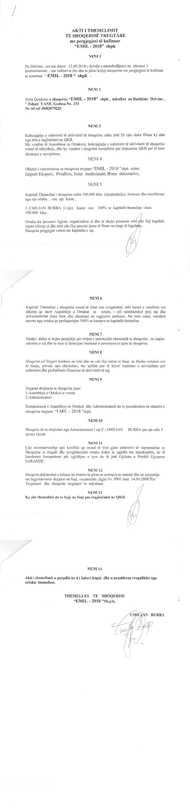 → Ekstrakt historik i regjistrit tregtar date 16.02.2022 → Ekstrakti Historik i Regjistrit Tregtar date 01.12.2022 → Akt themelimi i Shoqerise |