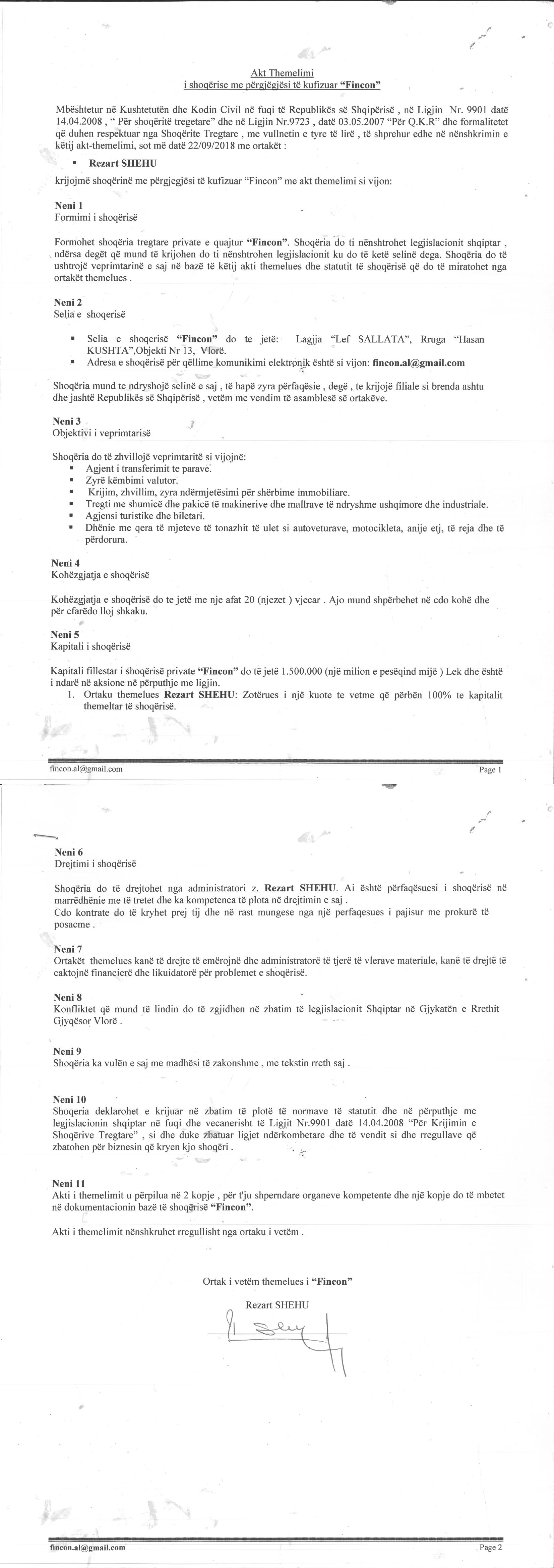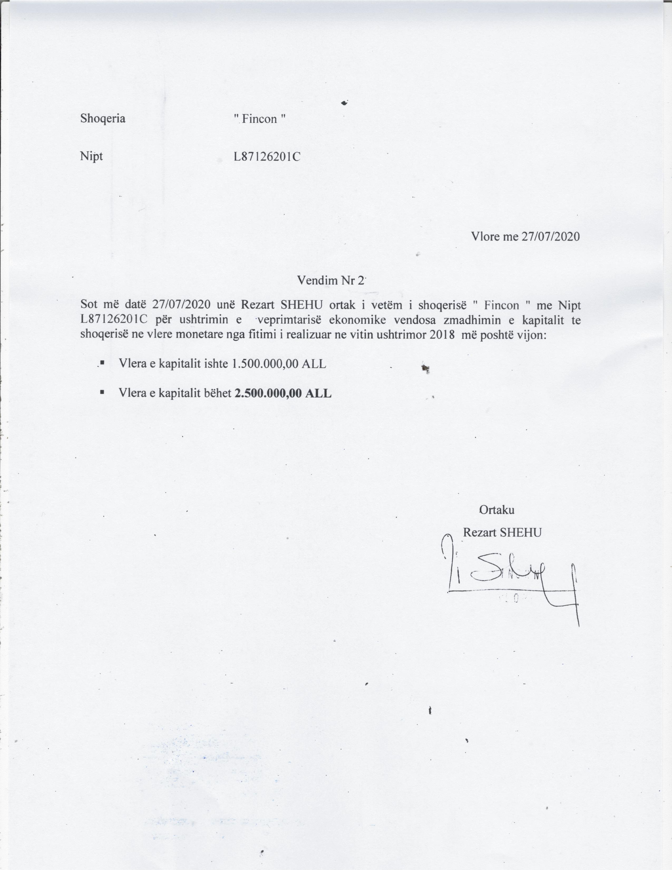 → Ekstrakti Historik i Regjistrit Tregtar date 05.12.2022 → Akt themelimi i Shoqerise → Vendim i Ortakut te Vetem, Zmadhim Kapitali date 27.07.2020 |