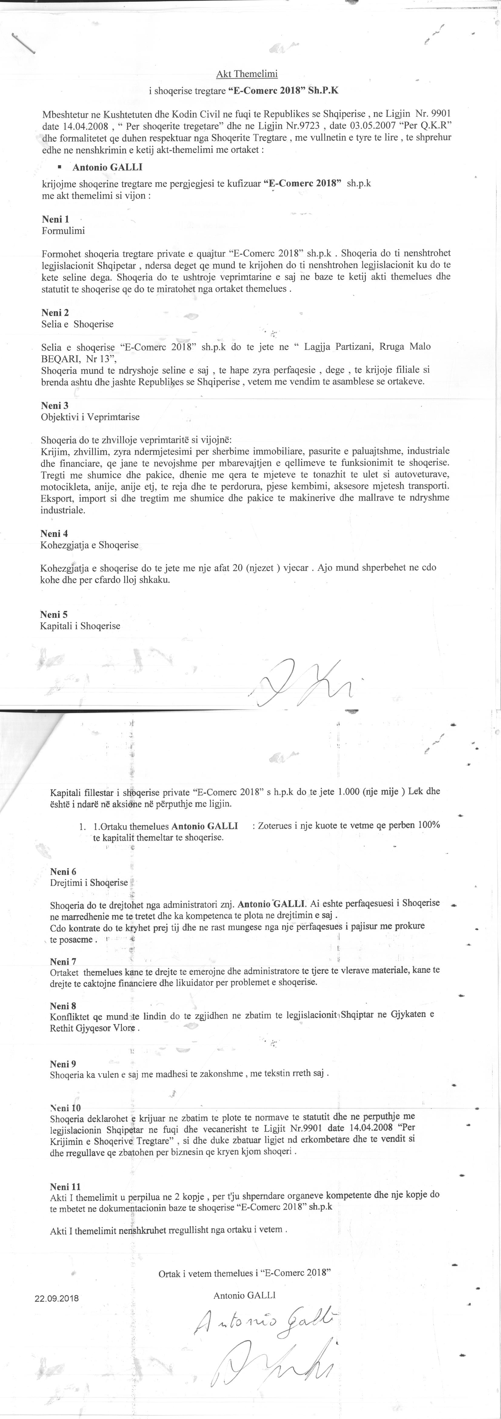 → Ekstrakti Historik i Regjistrit Tregtar date 05.12.2022 → Akt themelimi i Shoqerise → Ekstrakti Historik i Regjistrit te Pronareve Perfitues date 05.12.2022 |
