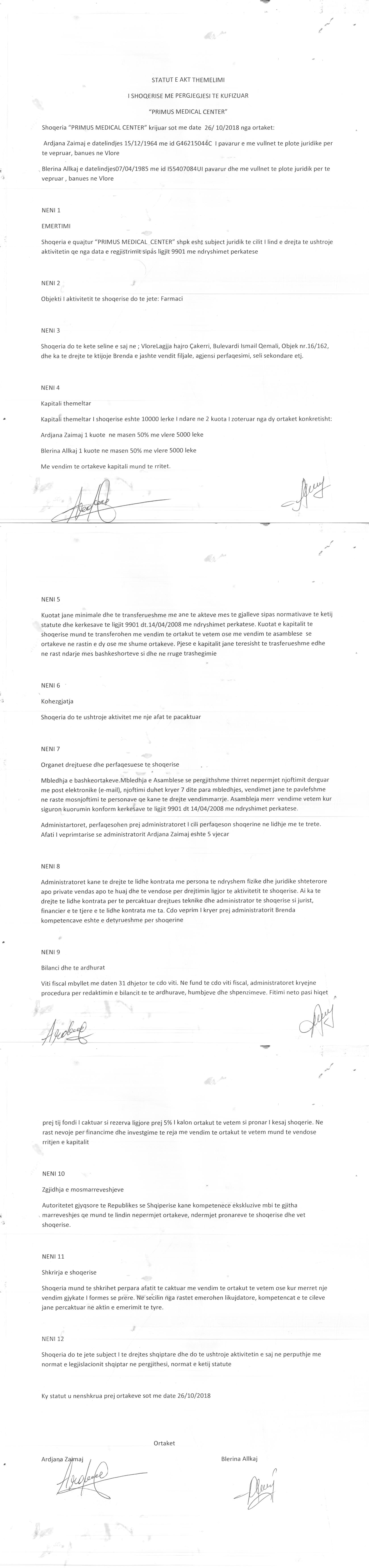 → Ekstrakti Historik i Regjistrit Tregtar date 15.12.2022 → Akt themelimi dhe Statuti i Shoqerise |
