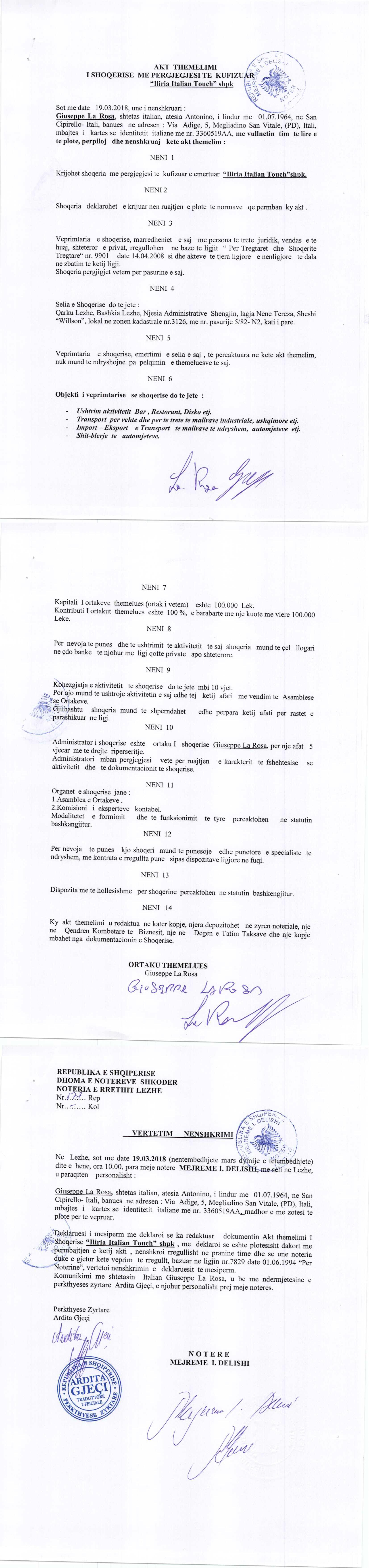 | Emërtime të tjera Tregtare: | "Iliria Italian Touch" shpk |