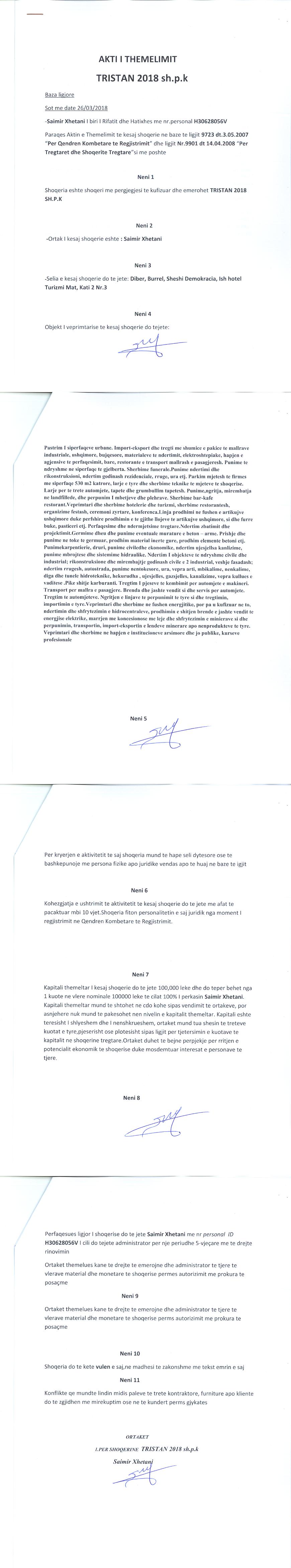 | Emërtime të tjera Tregtare: | TRISTAN 2018 shpk |