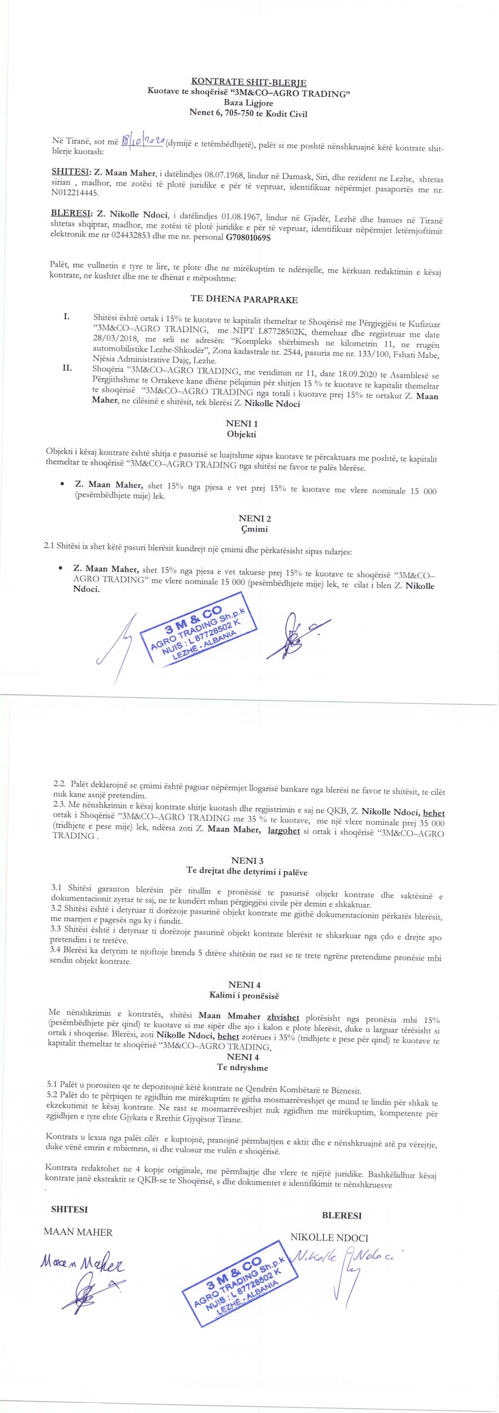 → Ekstrakti Historik i Regjistrit Tregtar date 22.09.2022 → Akt themelimi dhe Statuti i Shoqerise → Kontrate Shitblerje Kuotash date 11.10.2018 → Kontrate Shitblerje Kuotash date 18.10.2020 → Kontrate Shitblerje Kuotash date 01.07.2021 |
