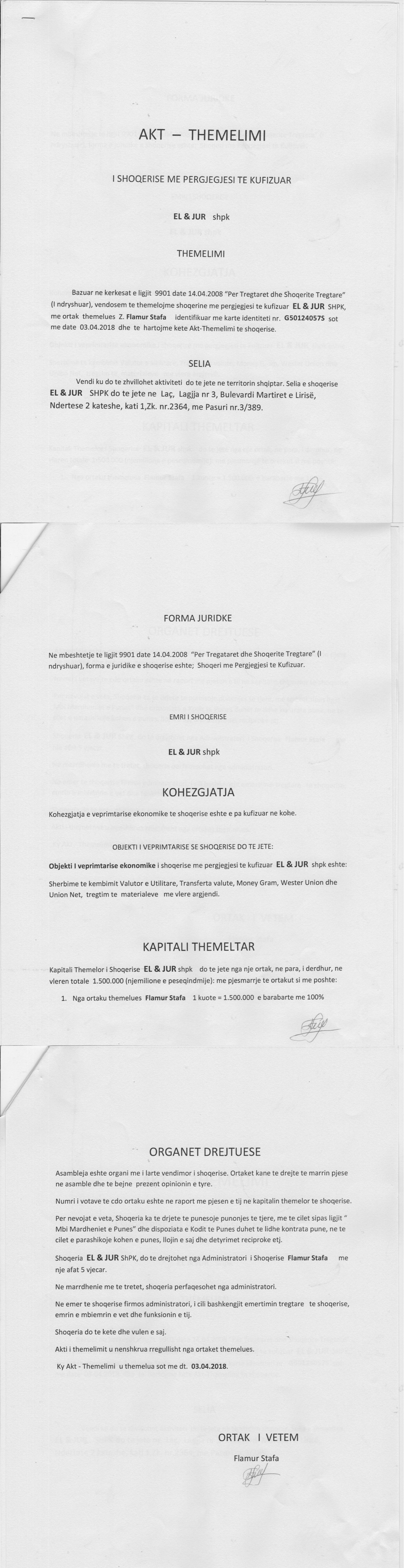 → Akti I Themelimit te Shoqerise |