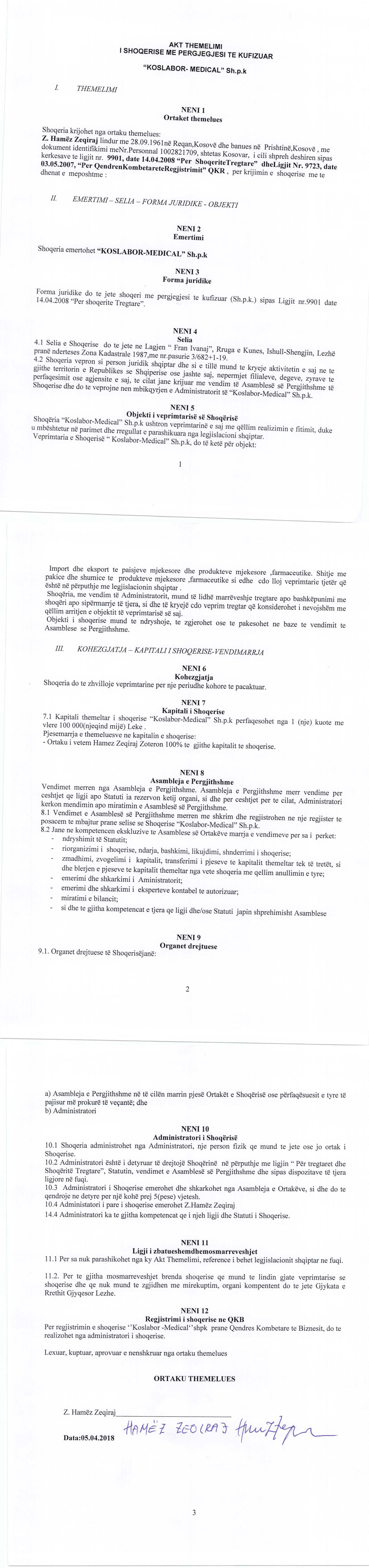 → Ekstrakti Historik i Regjistrit Tregtar date 01.10.2022 → Akt themelimi i Shoqerise |