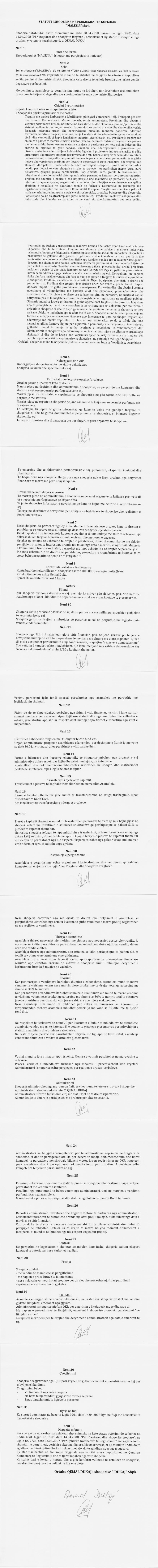 → Ekstrakti Historik i Regjistrit Tregtar date 11.10.2022 → Statuti i Shoqerise |