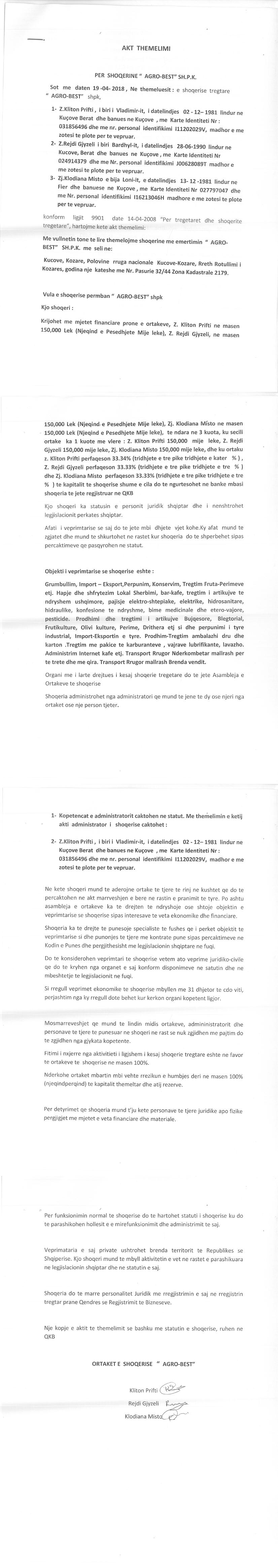 → Ekstrakti Historik i Regjistrit Tregtar date 17.10.2022 → Akt themelimi i Shoqerise |