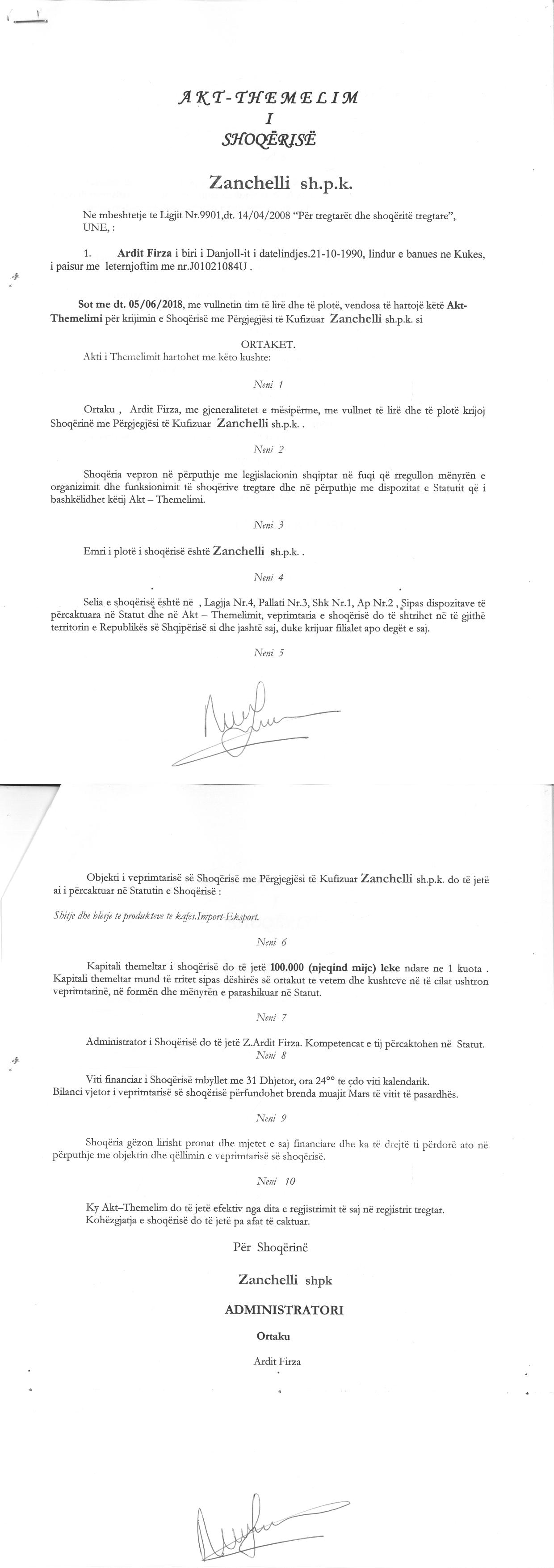 → Ekstrakt Historik i Regjistrit Tregtar date 25.10.2022 → Akt themelimi i Shoqerise |