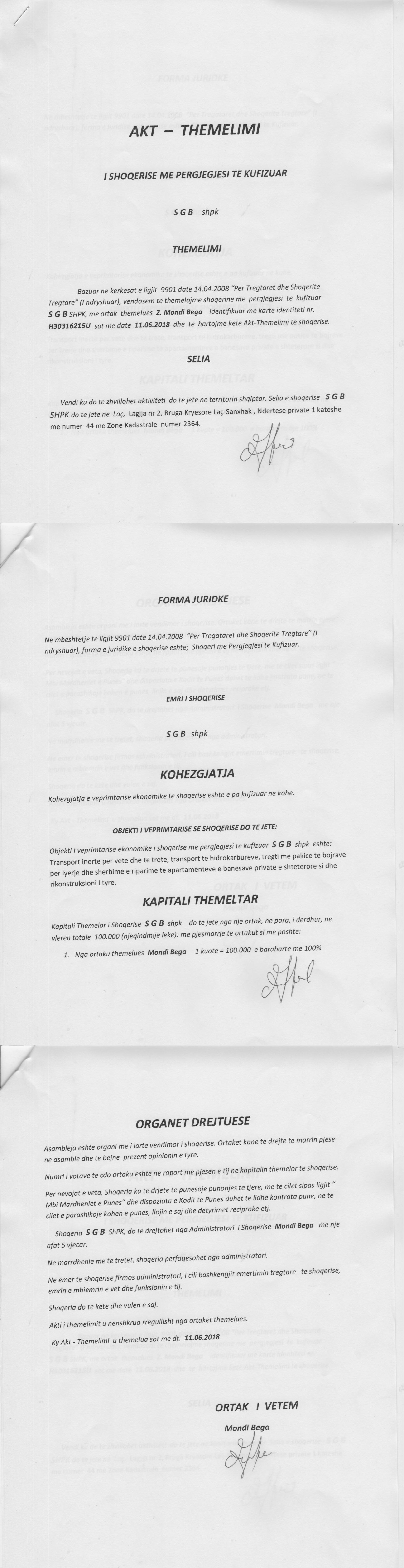 | Forma ligjore: | Shoqëri me Përgjegjësi të Kufizuar SH.P.K |