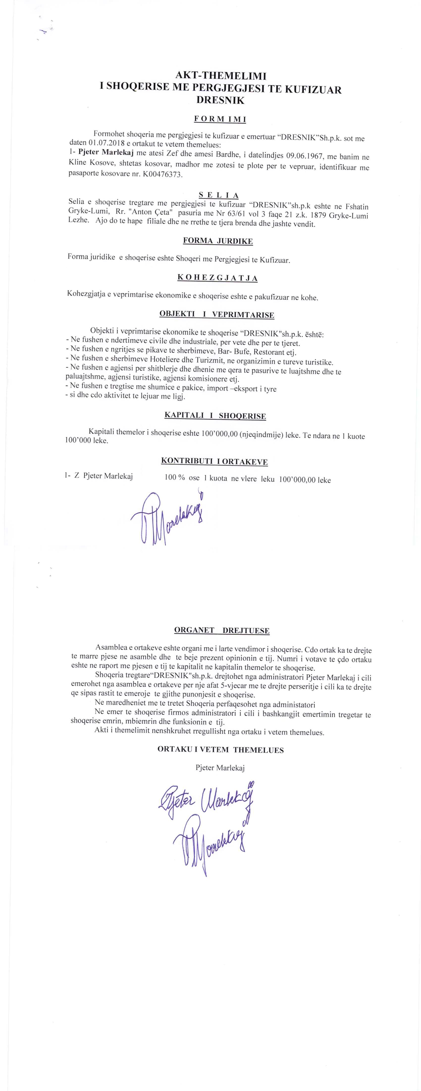 → Ekstrakti Historik i Regjistrit Tregtar date 04.11.2022 → Akt themelimi i Shoqerise → Ekstrakti Historik i Regjistrit te Pronareve Perfitues date 04.11.2022 |