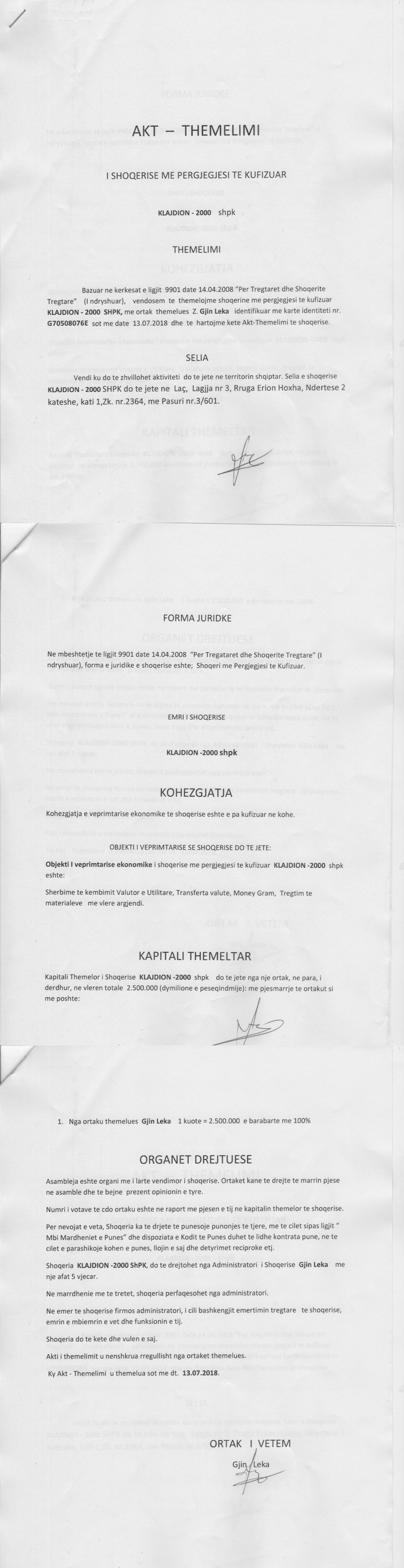 | Kapitali Themeltar(Lekë): | 2 500 000,00 |