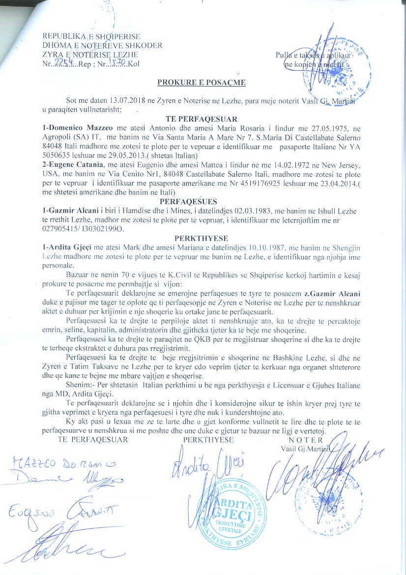 → Ekstrakti Historik i Regjistrit Tregtar date 01.12.2022 → Statuti i Shoqerise → Ekstrakti Historik i Regjistrit te Pronareve Perfitues date 01.12.2022 → Prokure e Posacme date 13.07.2018 |