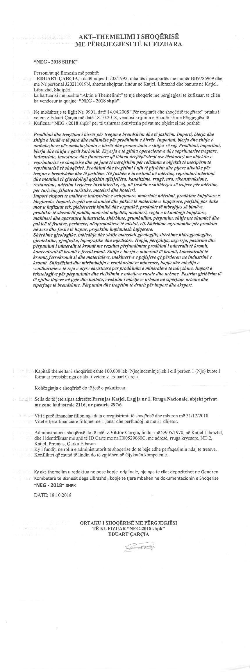 → Ekstrakti Historik i Regjistrit Tregtar date 16.02.2022 → Ekstrakti Historik i Regjistrit Tregtar date 14.12.2022 → Akt themelimi i Shoqerise |