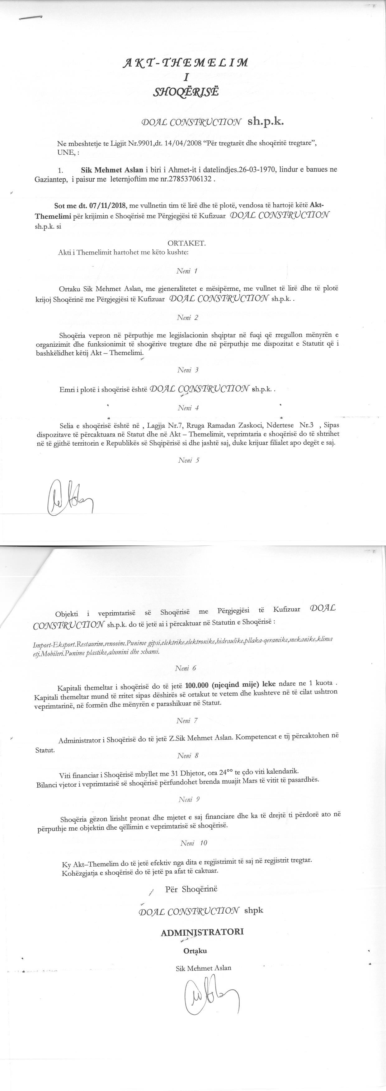 → Ekstrakti Historik i Regjistrit Tregtar date 16.12.2022 → Akt themelimi i Shoqerise → Ekstrakti Historik i Regjistrit te Pronareve Perfitues date 16.12.2022 |