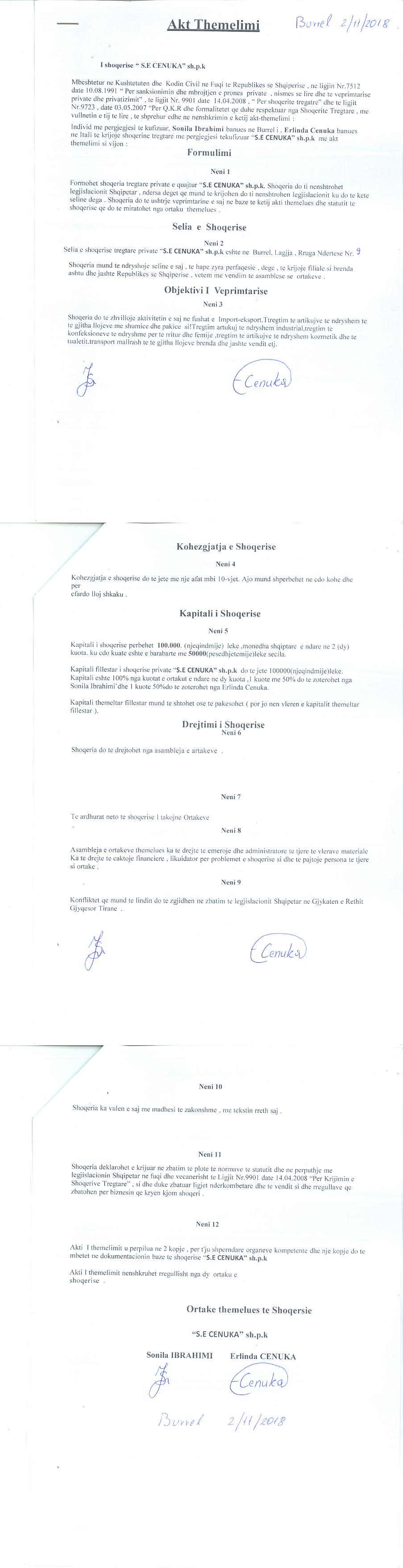 | Emërtime të tjera Tregtare: | "S.E CENUKA" SHPK |