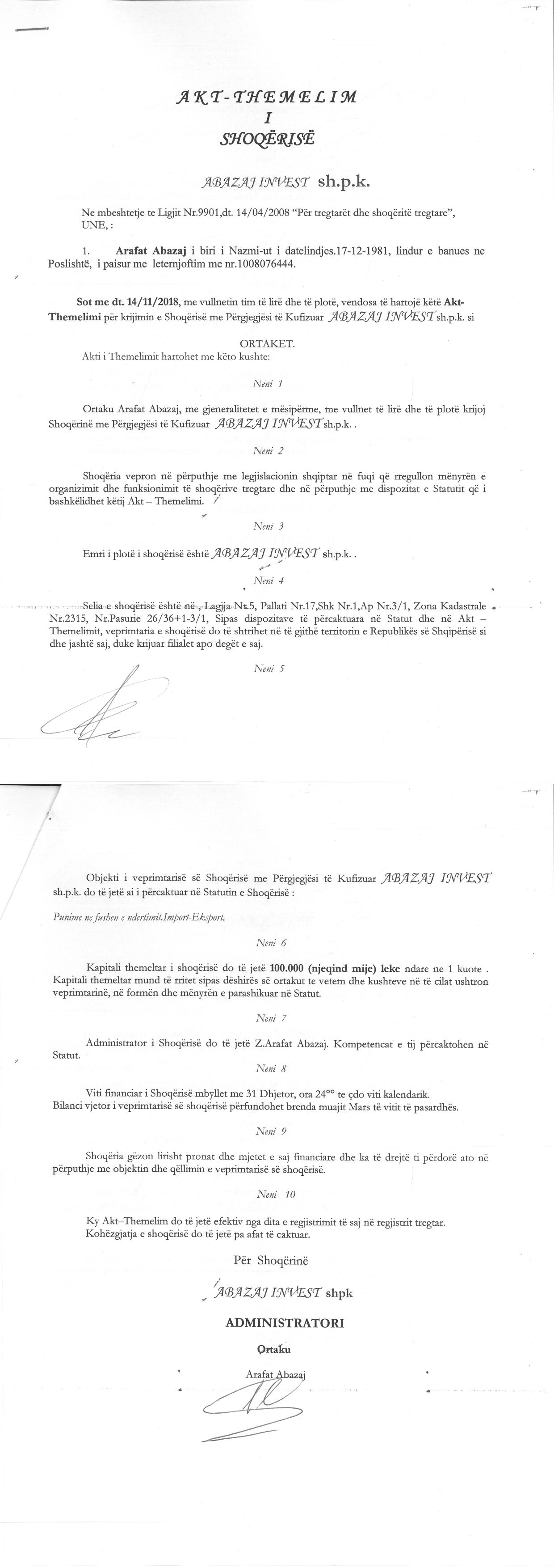 | Emërtime të tjera Tregtare: | ABAZAJ INVEST |