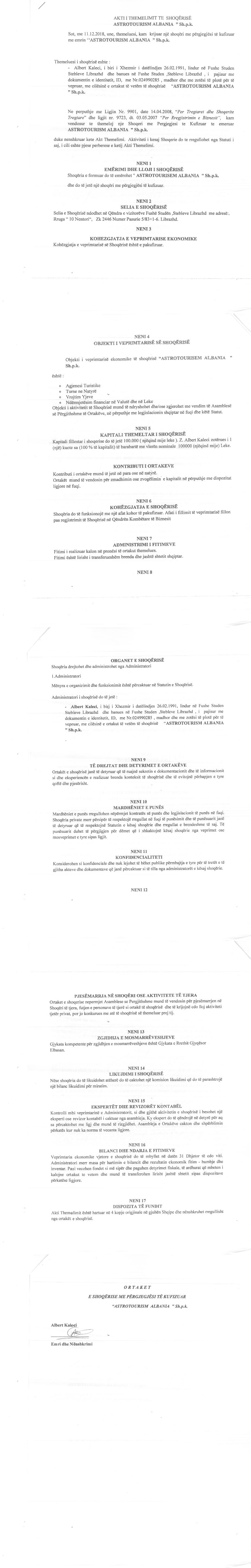 | Emërtime të tjera Tregtare: | ASTROTOURISM ALBANIA |