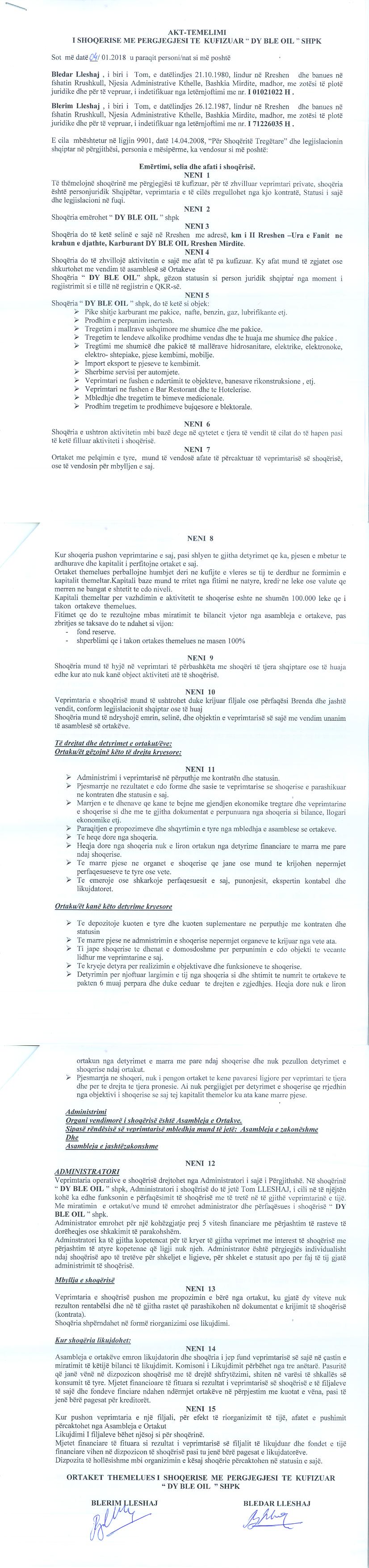 → Ekstrakti Historik I Regjistrit Tregtar date 22.09.2020 |