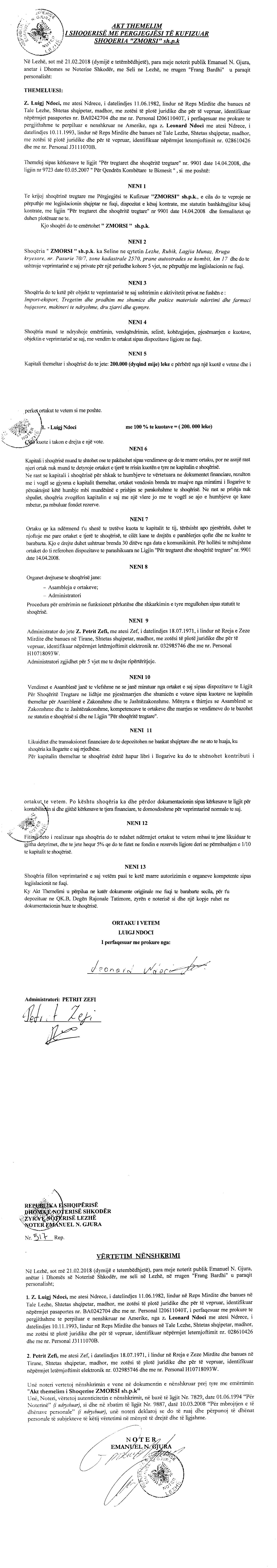 → Akti I Themelimit te Shoqerise |