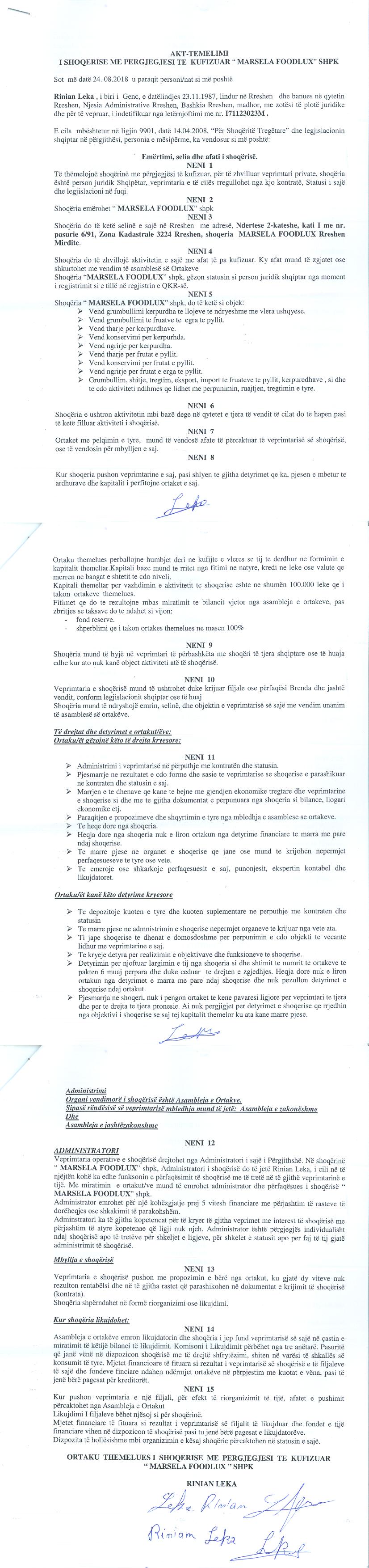 → Ekstrakti Historik i Regjistrit Tregtar date 17.11.2022 → Akt themelimi i Shoqerise |