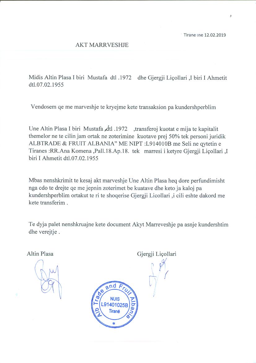 → Ekstrakt historik i regjistrit tregtar 29.07.2022 → Statuti i Shoqerise → Akt Marreveshje date 12.02.2019 → Akt Marreveshje date 22.02.2021 |
