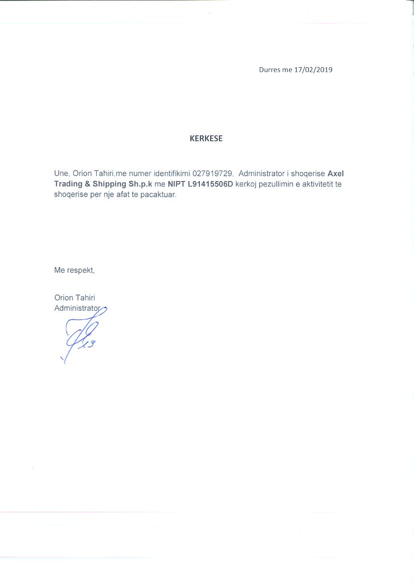 → Ekstrakt historik i regjistrit tregtar 09.12.2019 → Kerkese per pezullimin e aktivitetit 17.02.2019 |