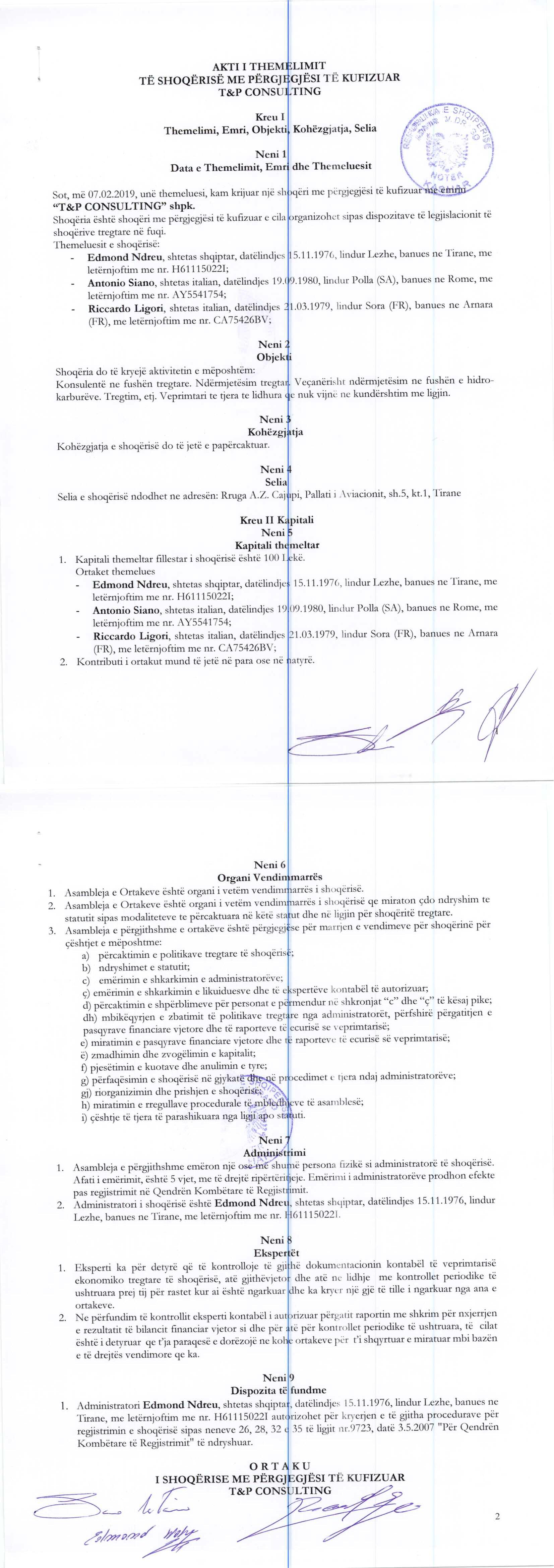 → Ekstrakt historik i regjistrit tregtar 11.12.2019 → Akti i themelimit |