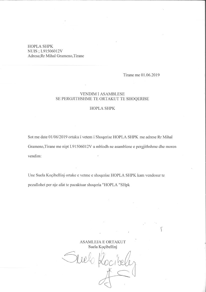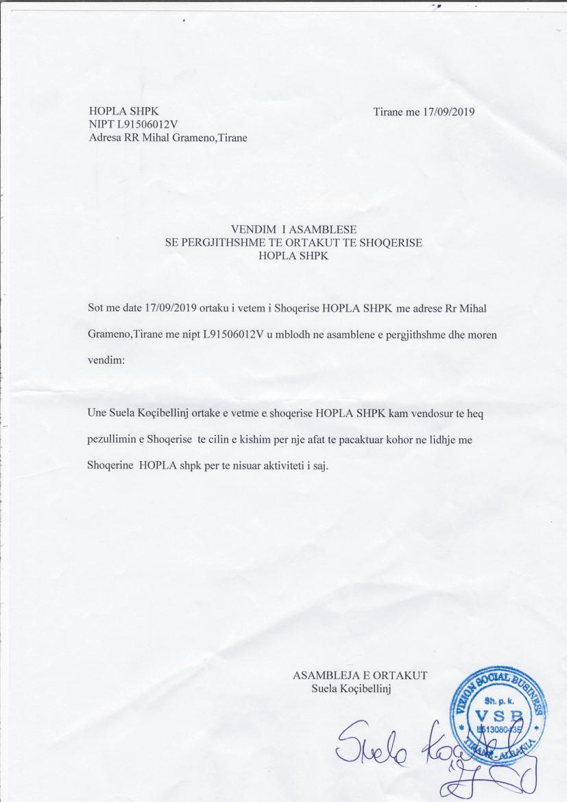 → Ekstrakt historik i regjistrit tregtar 09.01.2020 → Vendim per pezullimin e aktivitetit 01.06.2019 → Vendim per aktivizimin e shoqerise 17.09.2019 |