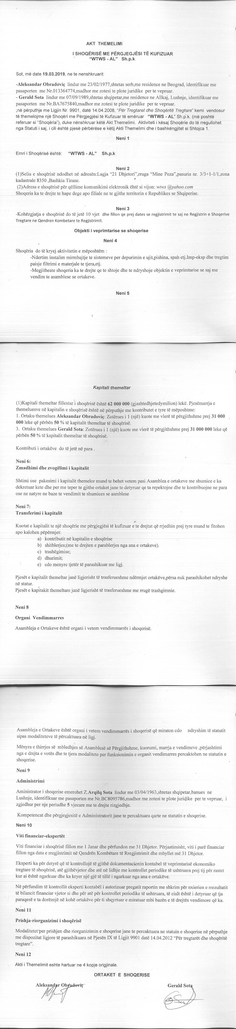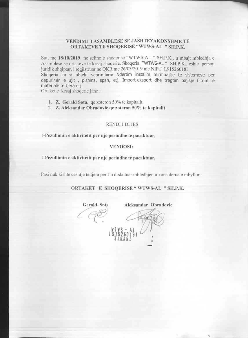 → Ekstrakt historik i regjistrit tregtar 17.01.2020 → Akti I themelimit → Vendimi per pezullimin e aktivitetit 18.10.2019 |