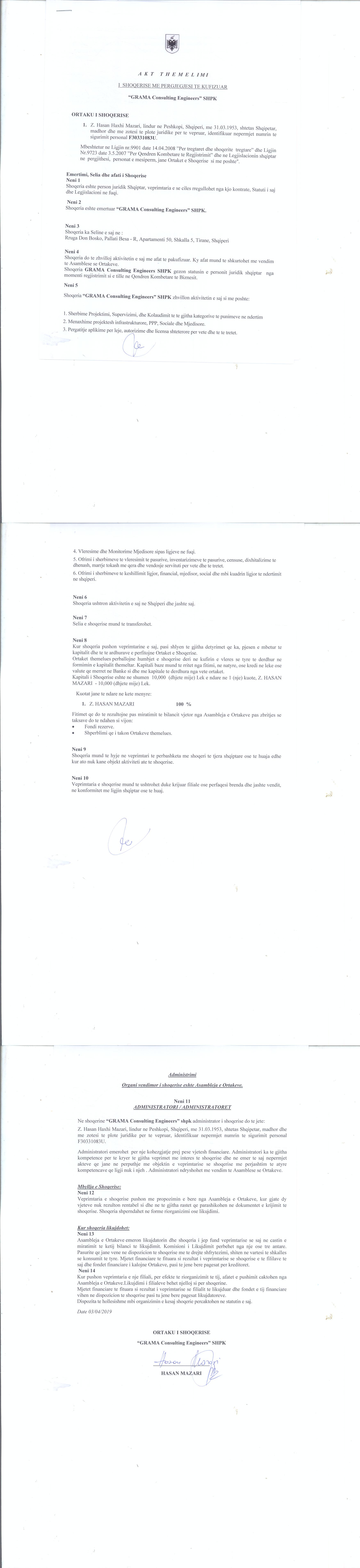 | Emërtime të tjera Tregtare: | GRAMA Consulting Engineers |
