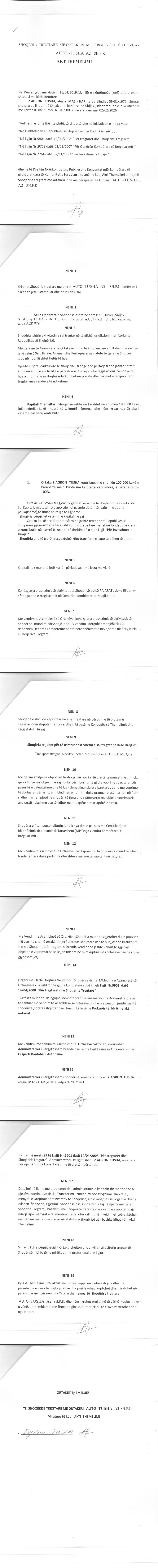 → Ekstrakt historik i regjistrit tregtar 31.01.2020 → Akti i themelimit |