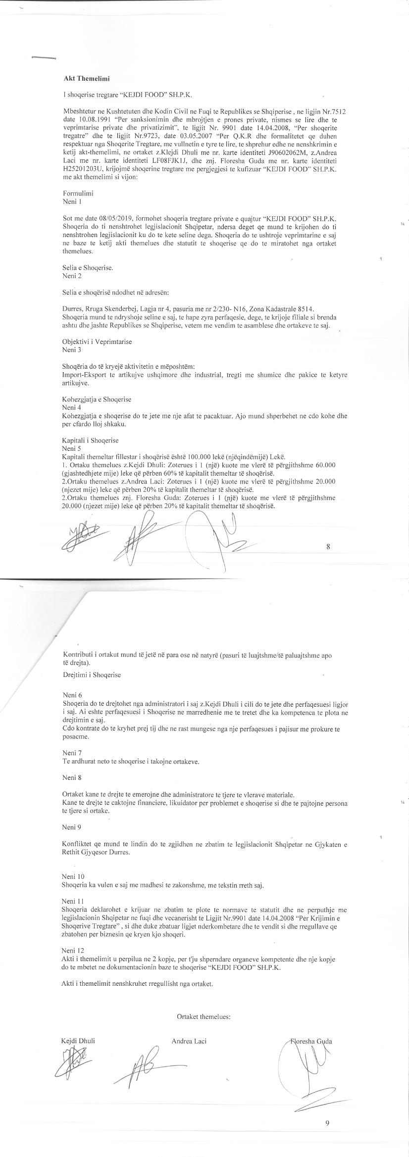→ Ekstrakt historik i regjistrit tregtar 07.02.2020 → Akti i themelimit |