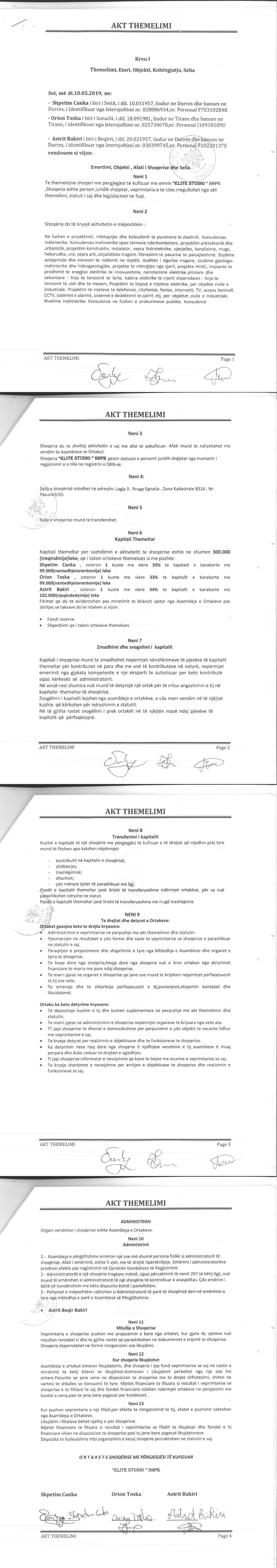 → Ekstrakt historik i regjistrit tregtar 21.07.2021 → Akt themelimi i Shoqerise → Ekstrakti Historik i Regjistrit Tregtar date 07.11.2022 → Ekstrakti Historik i Regjistrit Tregtar date 08.05.2023 → Kontrate Shitje Kuotash date 16.02.2023 → Kontrate Shitje Kuotash date 08.03.2023 |