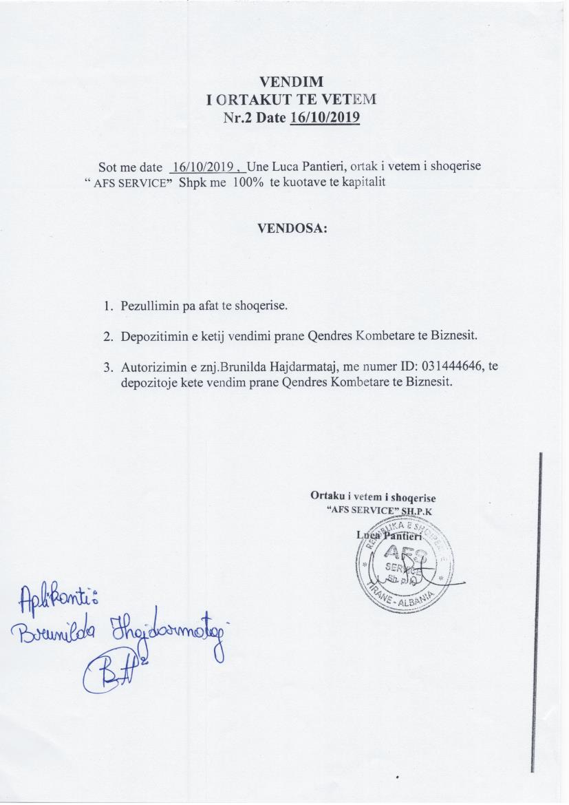 → Ekstrakti historik I regjistrit tregtar 22.10.2019 → Statuti I shoqerise → Vendimi iasamblese se pergjithshme date 16.10.2019 |