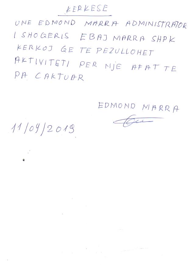 | Çështje Ligjore: | Më datë 11.09.2019, me vendim të administratorit, u pezullua aktiviteti i shoqërisë për një afat të pacaktuar. |