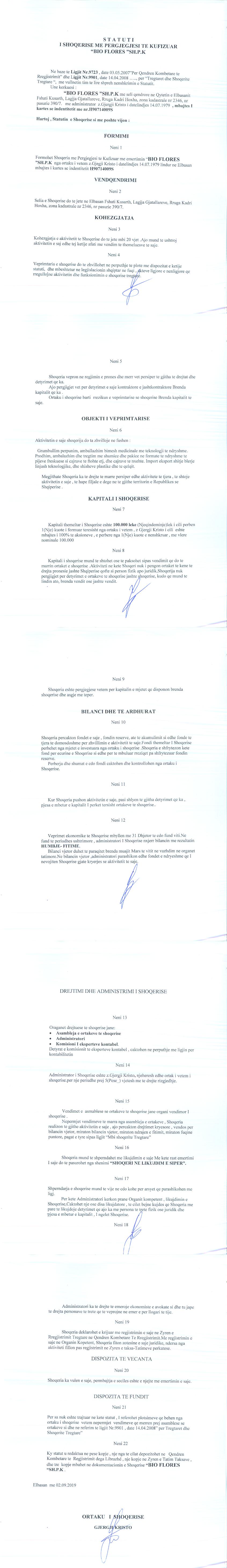→ Ekstrakti Historik I Regjistrit Tregtar date 23.11.2019 → Statuti I Shoqerise → Kontrata e shitjes se kuotave date 18.11.2019 → Ekstrakt Historik i Regjistrit Tregtar date 05.10.2023 → Ekstrakt Historik i Regjistrit Tregtar date 16.04.2024 → Të dhënat e Investimit, Financimet Nga IPARD - Aksesuar nga Agjencia për Zhvillim Bujqësor dhe Rural AZHBR datë 17.04.2024 |