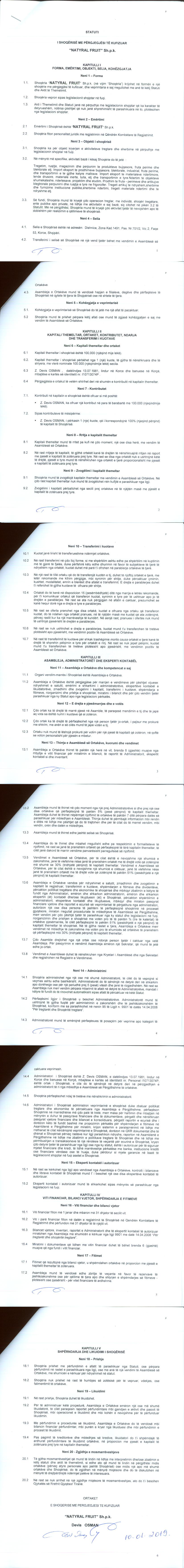 → Ekstrakt historik I regjistrit tregtar (03.04.2019) → Ekstrakt Historik i Regjistrit Tregtar date 16.10.2023 → Statuti i Shoqerise → Ekstrakt Historik i Regjistrit Tregtar date 17.04.2024 → Të dhënat e Investimit, Financimet Nga IPARD - Aksesuar nga Agjencia për Zhvillim Bujqësor dhe Rural AZHBR datë 17.04.2024 |